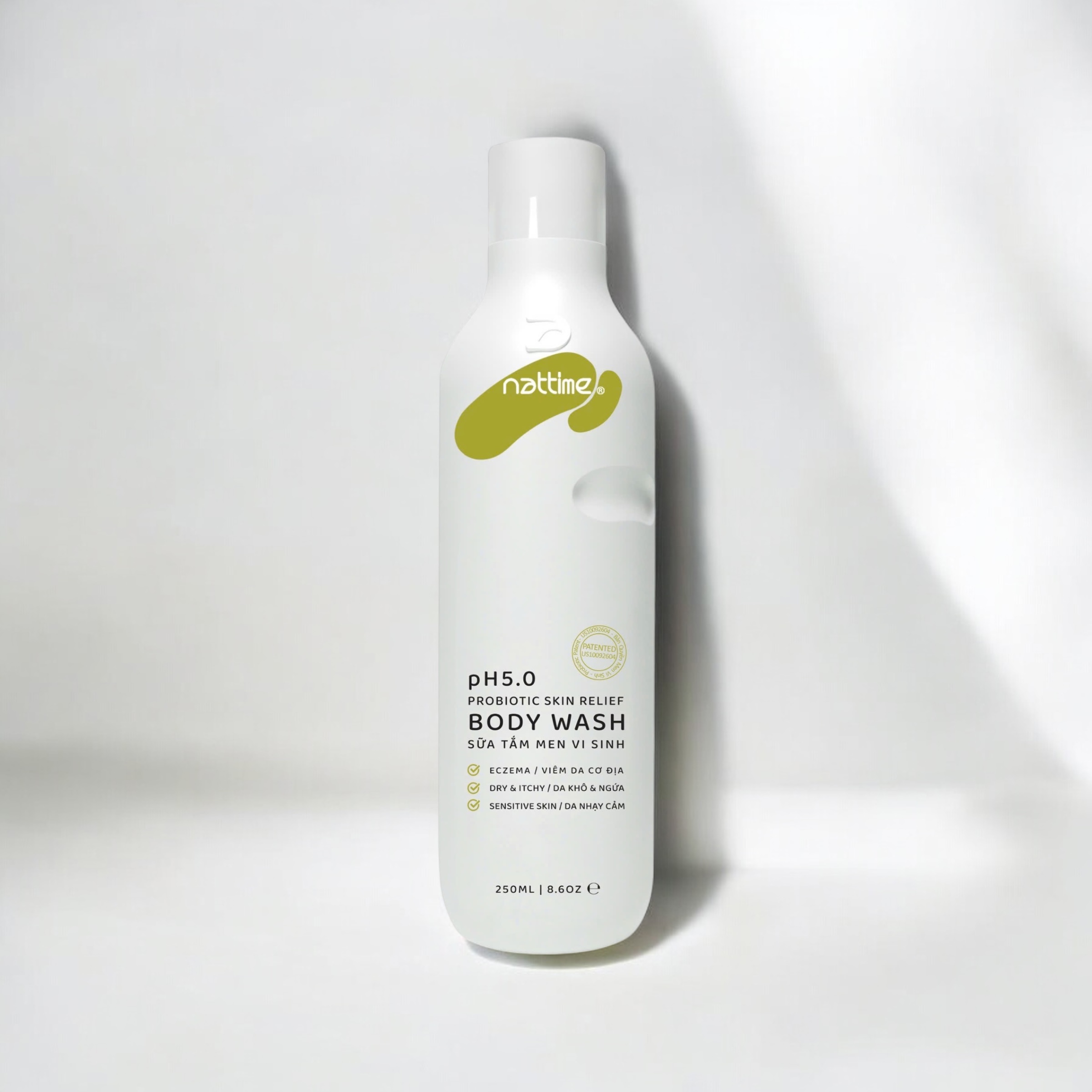 Sữa Tắm Men Vi Sinh 3in1 Nattime pH5 là sản phẩm làm sạch dịu nhẹ với độ pH chuẩn 5, giúp làm sạch da và tóc mà không gây khô hay mất cân bằng sau khi sử dụng. Công thức ứng dụng men vi sinh Biobacii™ giúp cân bằng hệ sinh thái da, củng cố hàng rào bảo vệ tự nhiên, hỗ trợ làm mềm và dịu da, giảm ngứa, đặc biệt phù hợp với làn da nhạy cảm và da đang gặp tình trạng kích ứng.